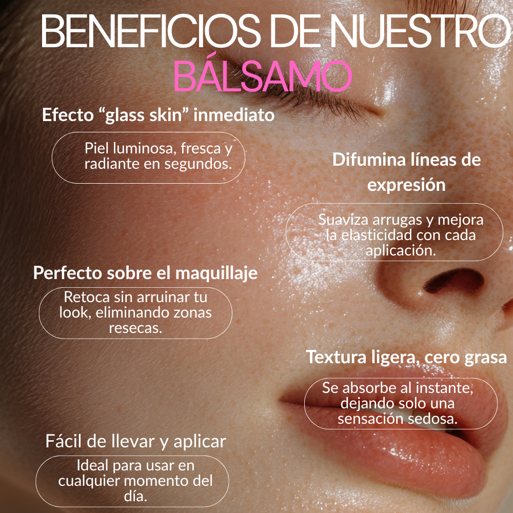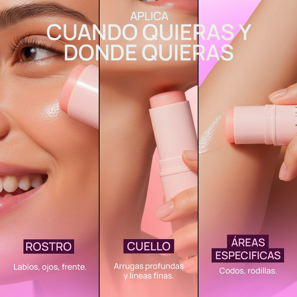 Con cada aplicación, este bálsamo coreano ayuda a suavizar las líneas de expresión y arrugas provocadas por la resequedad, mejora la elasticidad y devuelve la firmeza natural de la piel, logrando un aspecto más liso, luminoso y rejuvenecido. Su efecto “glass skin” aporta un brillo saludable en segundos, revitaliza la piel apagada y ayuda a unificar el tono y la textura. El rostro se ve más suave, uniforme y nutrido, y el maquillaje luce más fresco y natural por más tiempo. Su formato en stick permite una aplicación práctica en zonas como rostro, contorno, labios y cuello, siendo apto incluso para piel sensible.